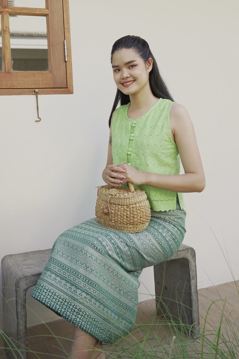 เสื้อแขนกุดดีไซน์เรียบง่ายแฝงด้วยเสน่ห์ ผลิตจาก ผ้าคอตตอน 100% ปักลายลูกไม้ ประณีตทั้งตัว ให้ความรู้สึกเบาสบายและดูสุภาพอ่อนหวานในเวลาเดียวกัน