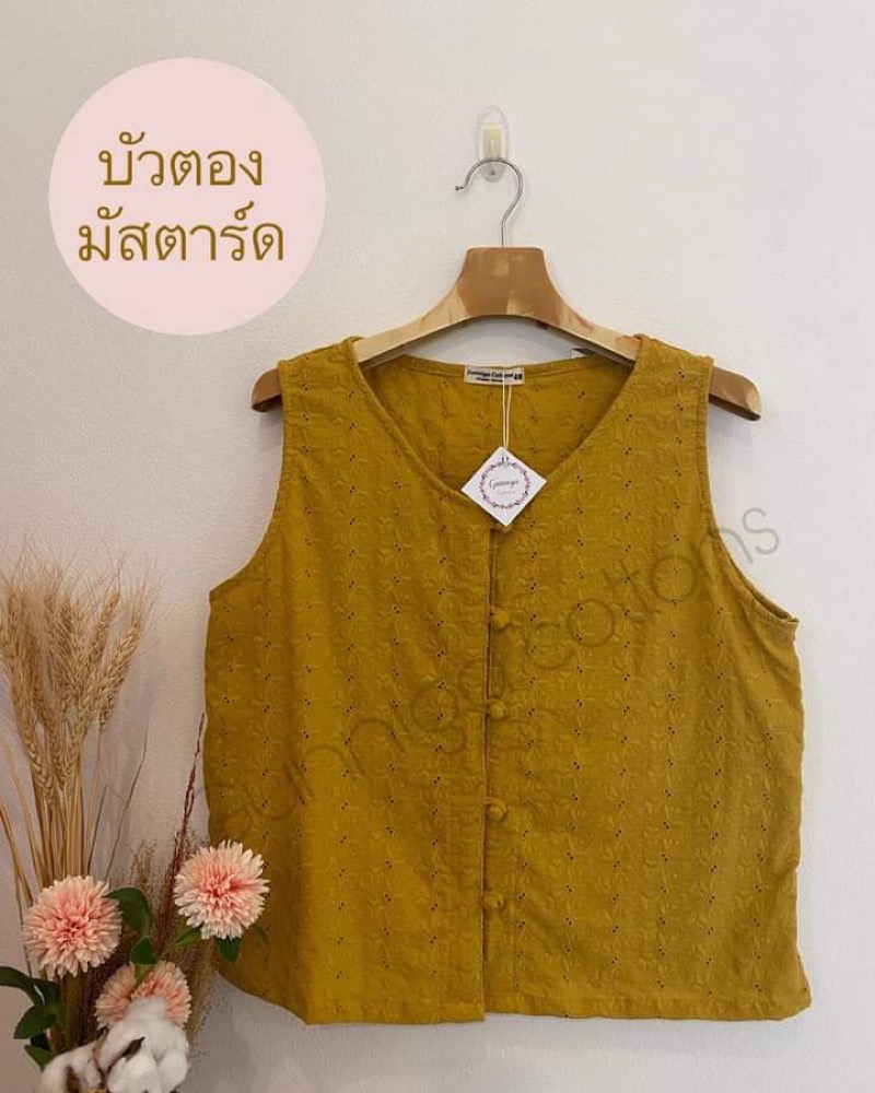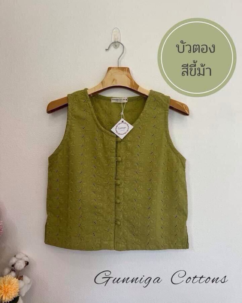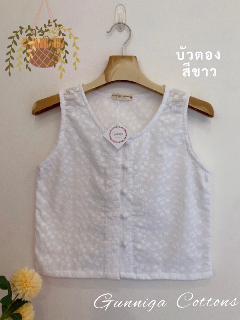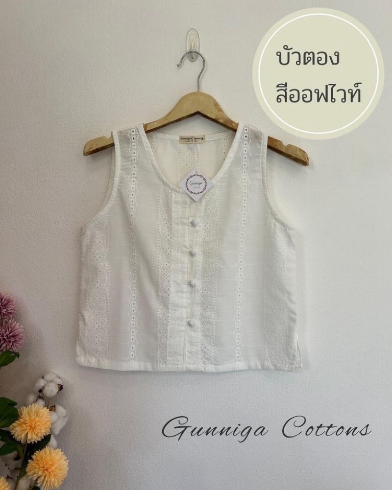 เสื้อแขนกุดดีไซน์เรียบง่าย แต่แฝงด้วยเสน่ห์ความสุภาพ ผลิตจาก ผ้าคอตตอน 100% ปักลายลูกไม้ ประณีตทั้งตัว สวมใส่สบาย ระบายอากาศได้ดี เหมาะกับสภาพอากาศเมืองไทย