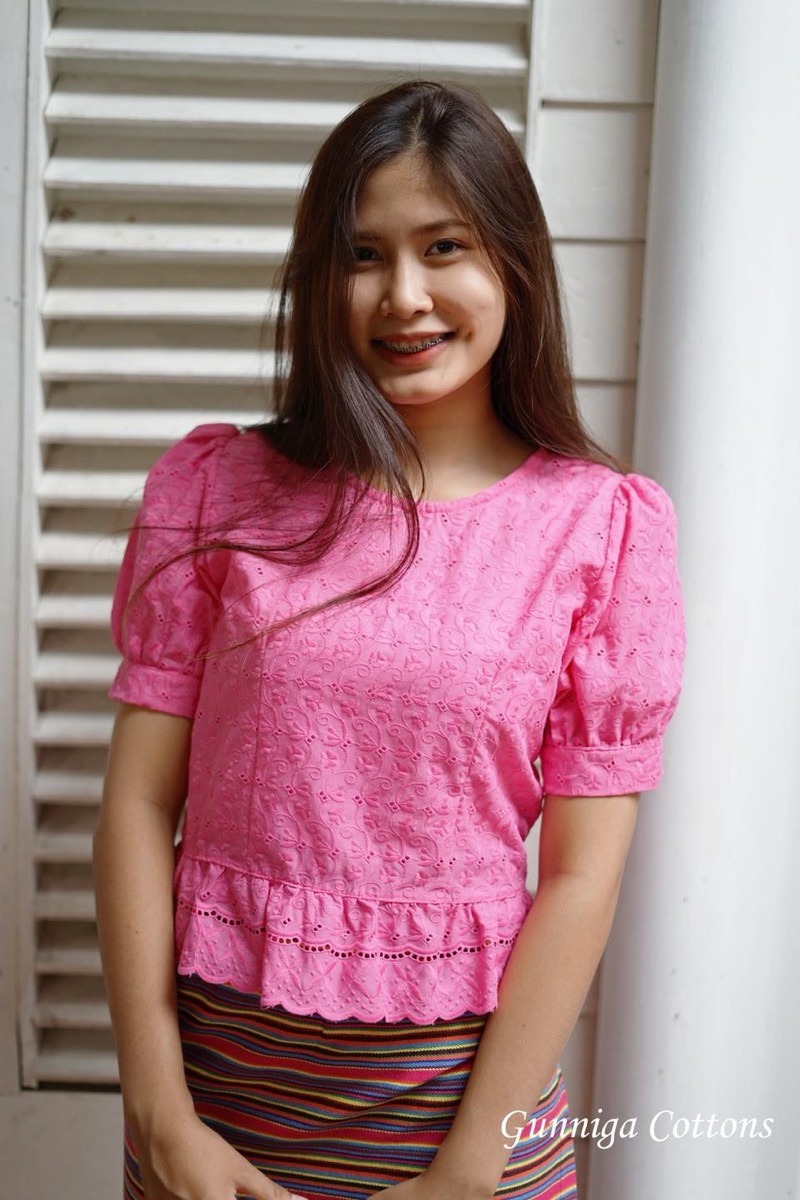เสื้อลูกไม้ดีไซน์หวานละมุน ที่ตัดเย็บจาก ผ้าคอตตอน 100% ปักลูกไม้ทั้งตัว ใส่สบาย ระบายอากาศได้ดี และให้ลุคสุภาพดูดีทุกโอกาส
