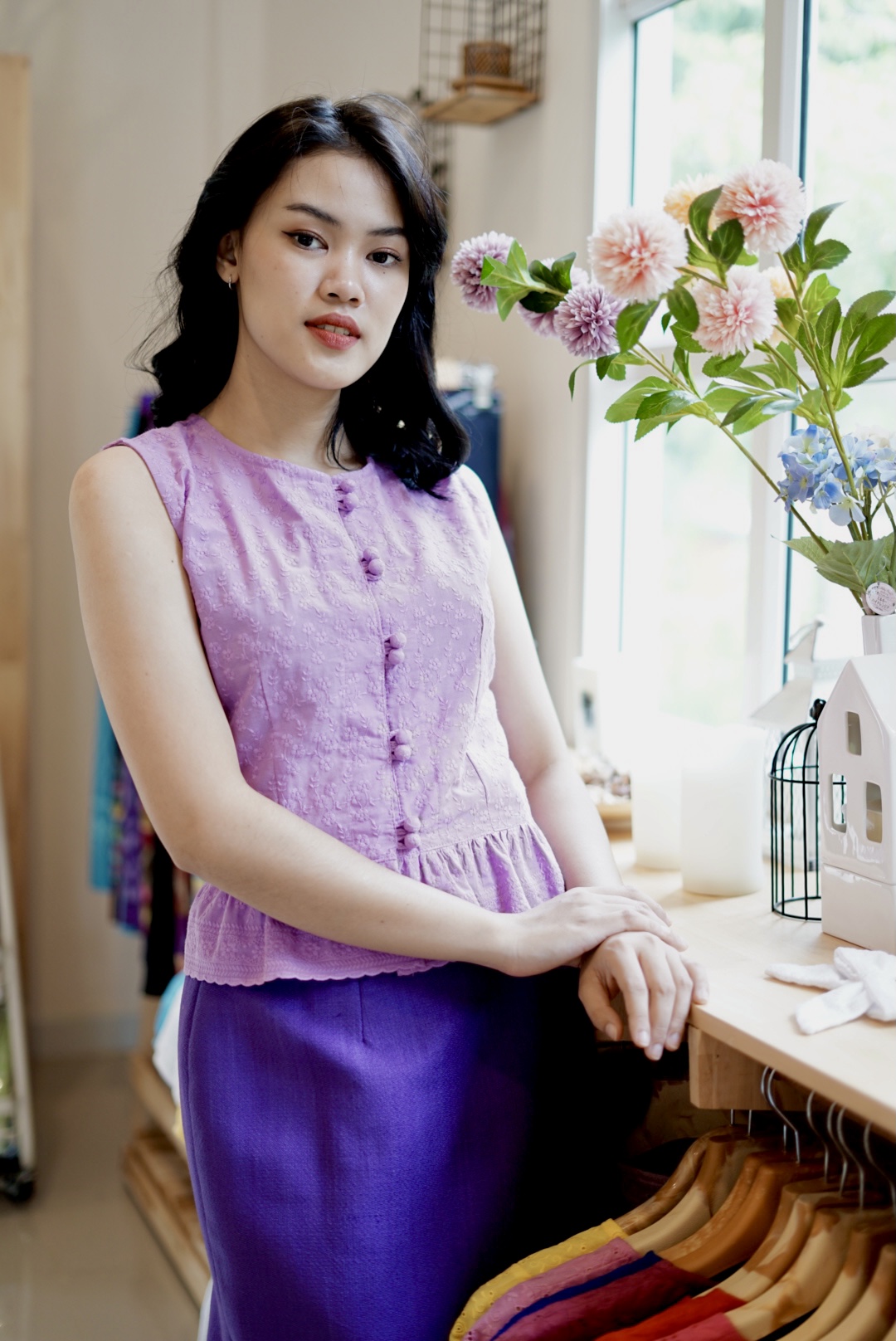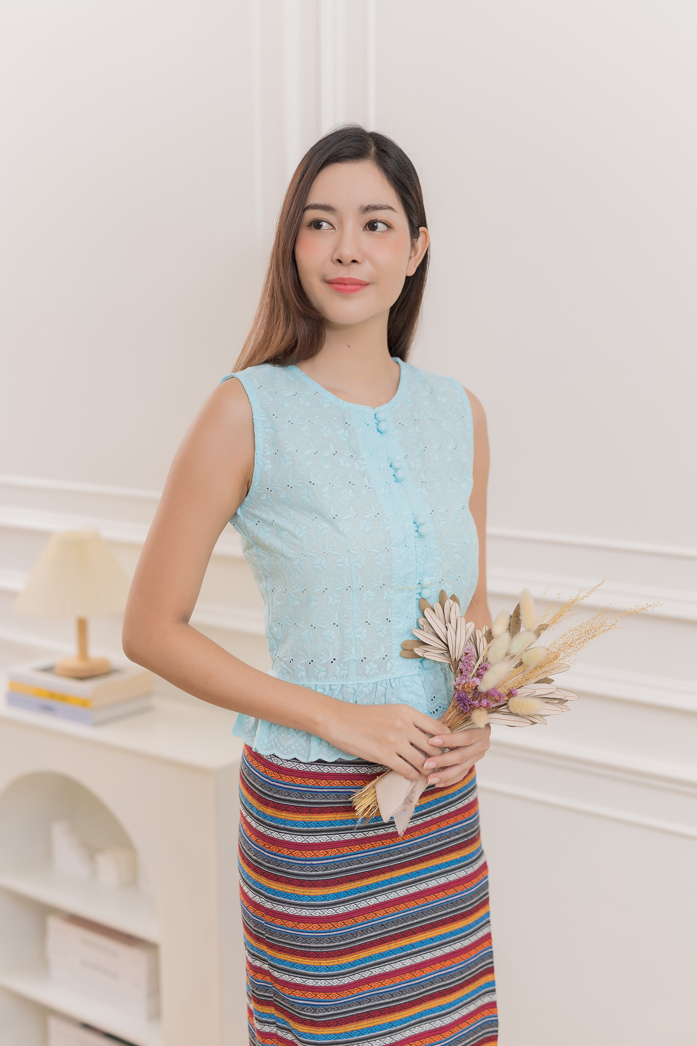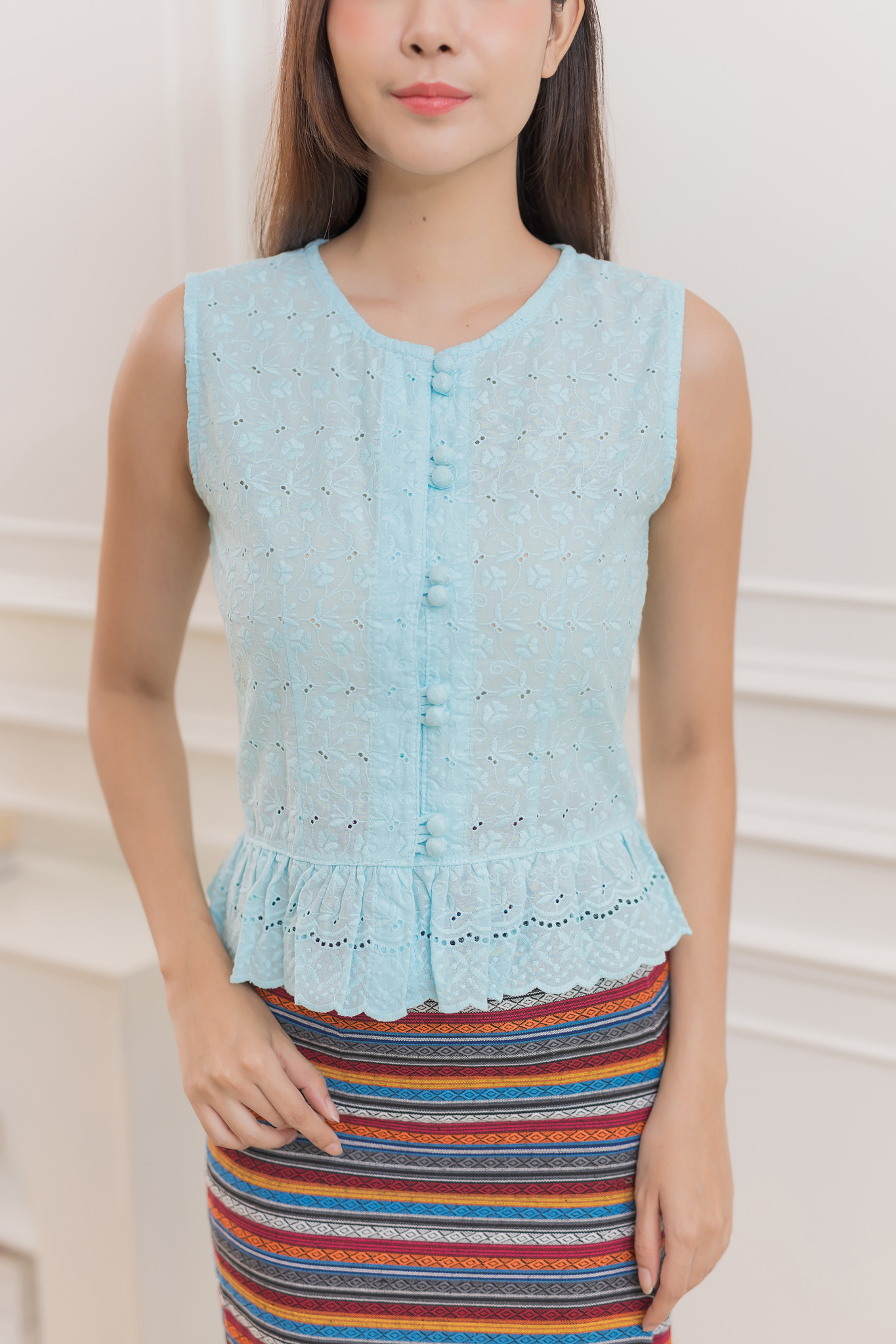 เสื้อลูกไม้ดีไซน์หวานสดใส ผลิตจาก ผ้าคอตตอน 100% ปักลูกไม้ทั้งตัว สวมใส่สบาย ระบายอากาศได้ดี เหมาะสำหรับผู้หญิงที่ชอบความเรียบง่ายแต่แฝงความอ่อนหวานสดใส