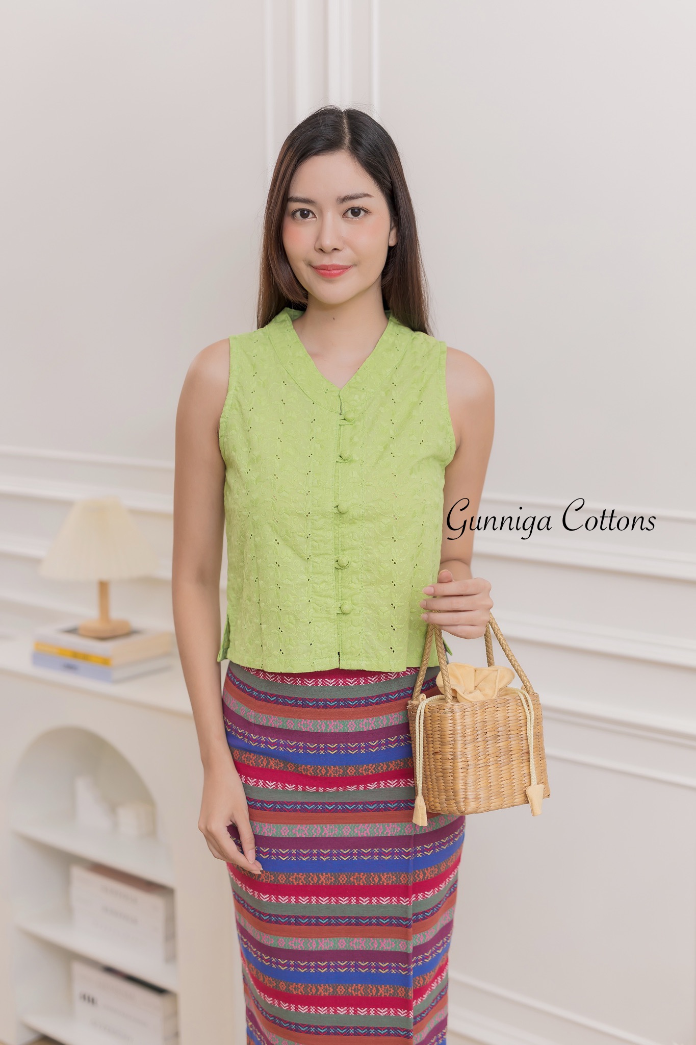 เสื้อแขนกุดสไตล์สุภาพ ผลิตจากผ้าคอตตอน 100% ปักลายลูกไม้ประณีต สวมใส่สบาย ระบายอากาศได้ดี ดีไซน์เรียบหรู ดูสุภาพในทุกโอกาส