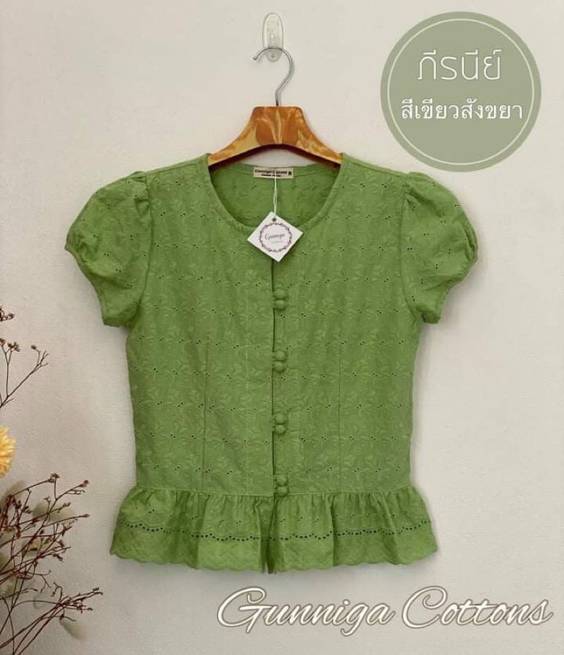 ✨ รายละเอียดดีไซน์ • ผ้าฝ้าย 100% ปักลูกไม้ เนื้อนุ่ม ใส่สบาย ระบายอากาศได้ดี • แขนตุ๊กตา เพิ่มความอ่อนหวานและน่ารัก • ติดกระดุมปั๊มแฮนด์เมด 10 เม็ด ดีไซน์ประณีต หรูหราในทุกดีเทล • ทรงเข้ารูป คอกลม ช่วยเสริมบุคลิกให้ดูสง่า • ชายระบายพลิ้วไหว เติมเสน่ห์ให้ลุคดูสดใส อ่อนเยาว์