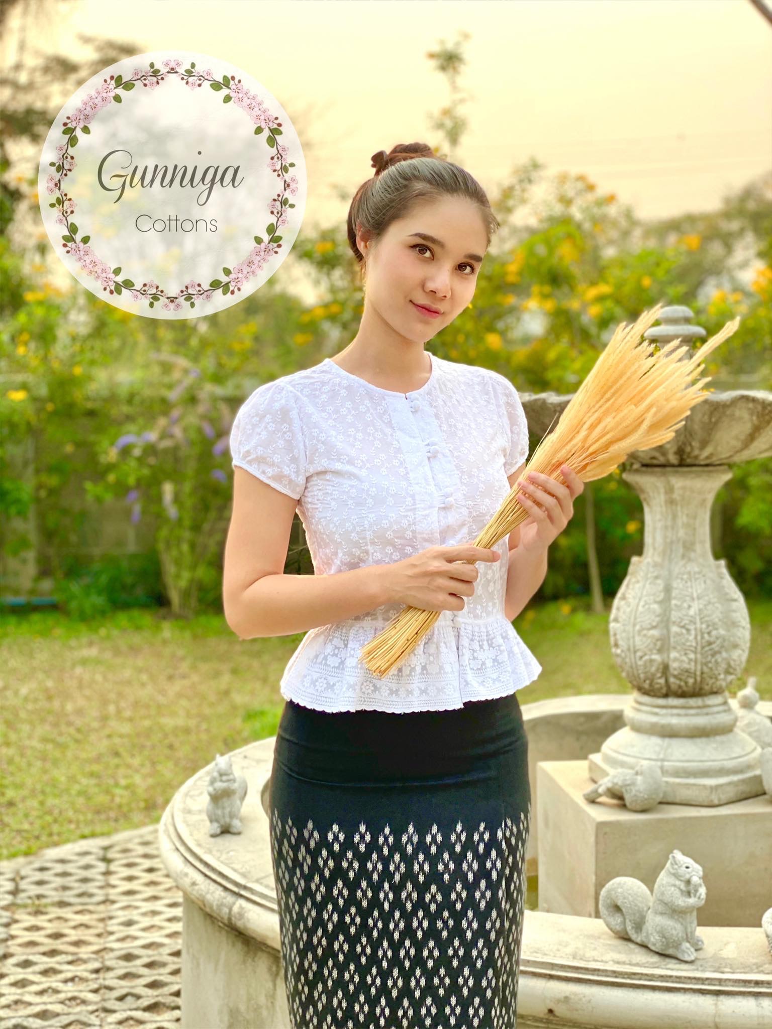 เสื้อภีรนีย์ สีขาวWHF ลายปักเสื้อตามรูป งานสวยตรงปก100% ตัดเย็บจากช่างฝีมือคนไทย ถ่ายรูปจากสินค้าจริงทุกตัว