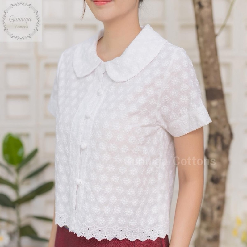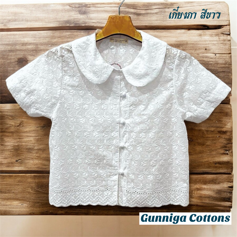 เสื้อลูกไม้สไตล์คลาสสิก ผลิตจาก ผ้าคอตตอน 100% ปักลูกไม้ ประณีตทั้งตัว ให้สัมผัสนุ่มสบาย ใส่แล้วดูสุภาพ อ่อนหวาน และเรียบหรูในเวลาเดียวกัน