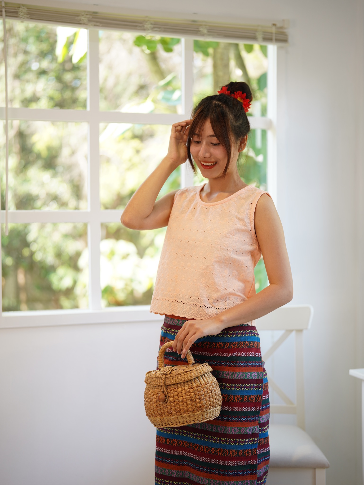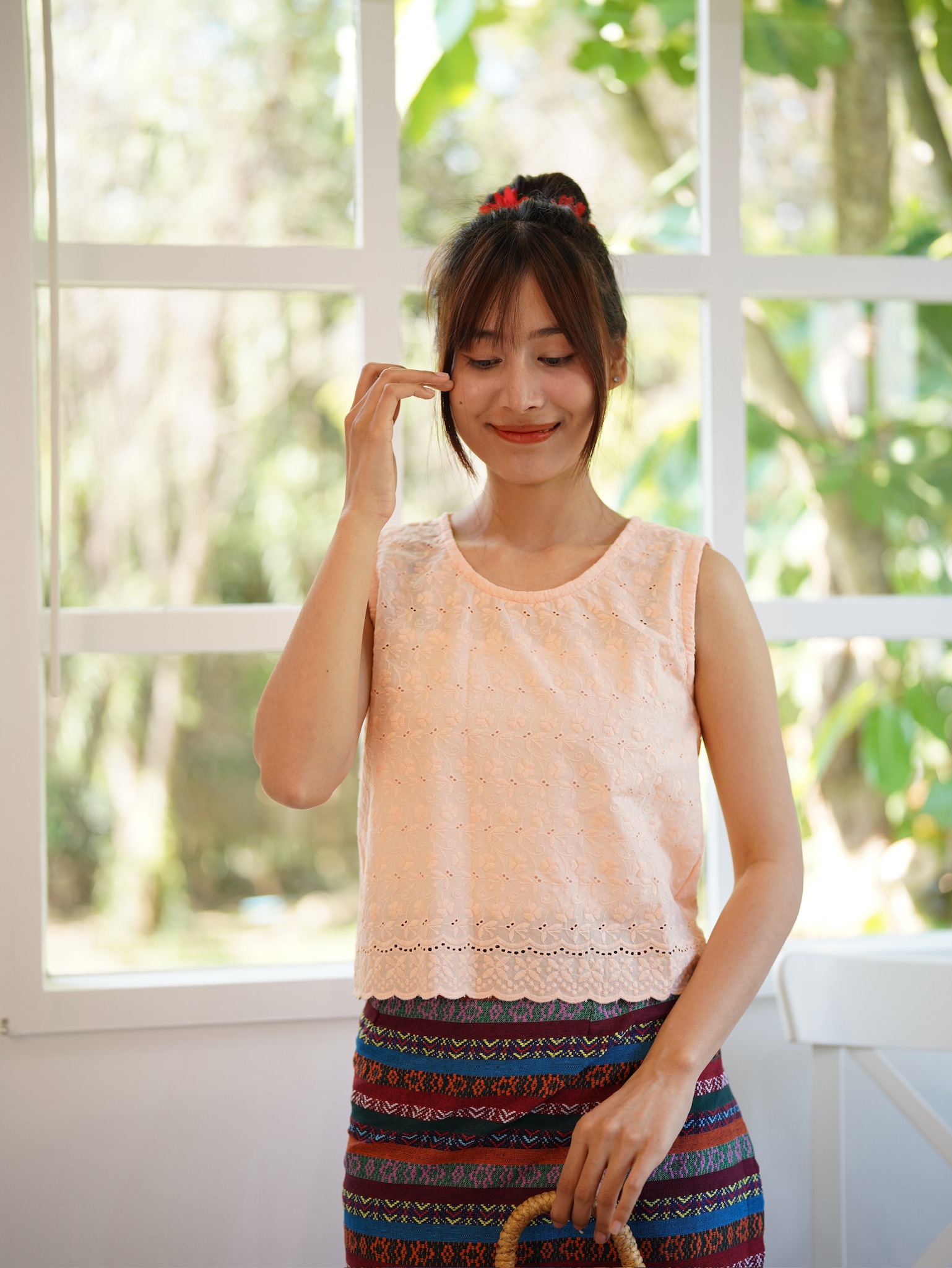 เสื้อแขนกุดเรียบหรู ผลิตจากผ้าคอตตอน 100% ปักลายลูกไม้ประณีต ให้ลุคสุภาพอ่อนหวาน ใส่ได้หลายโอกาส มิกซ์ง่ายทั้งกระโปรงและกางเกง