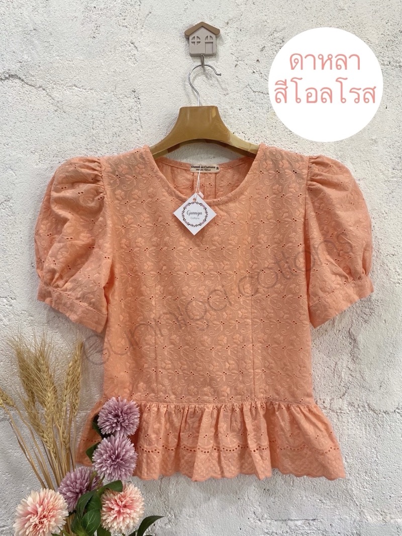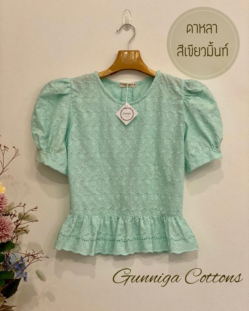 เสื้อลูกไม้ดีไซน์หวานละมุน ที่ตัดเย็บจาก ผ้าคอตตอน 100% ปักลูกไม้ทั้งตัว ใส่สบาย ระบายอากาศได้ดี และให้ลุคสุภาพดูดีทุกโอกาส