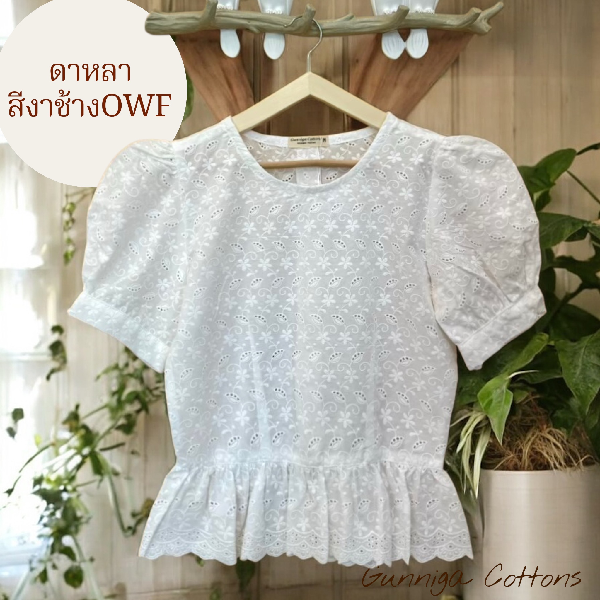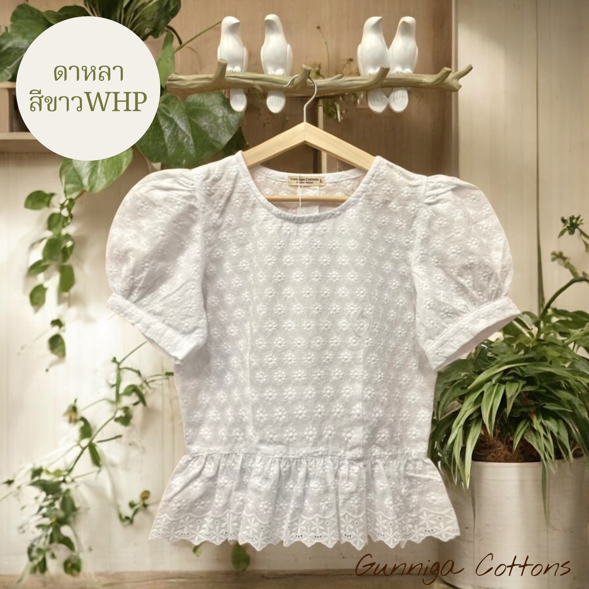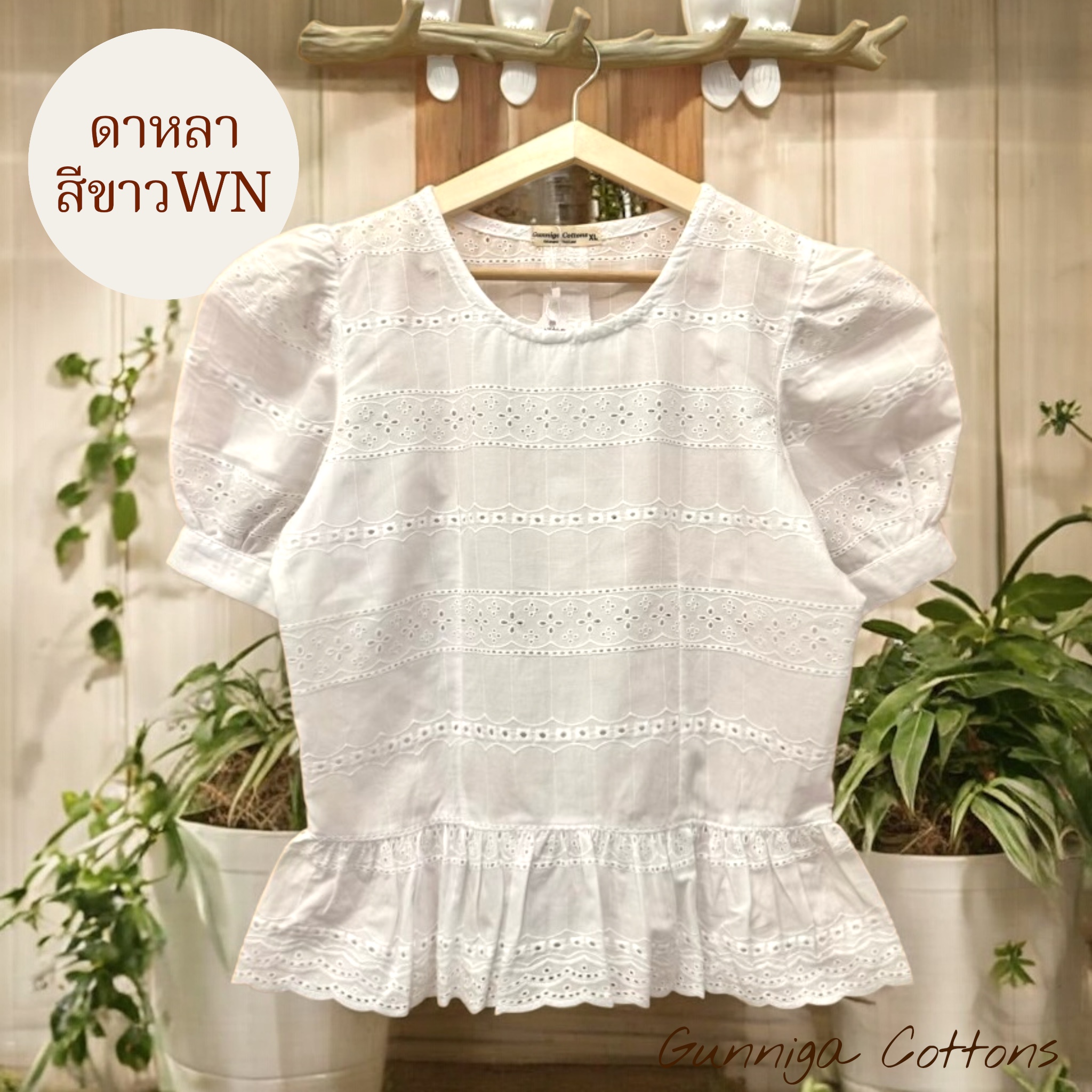 เสื้อลูกไม้ดีไซน์หวานละมุน ที่ตัดเย็บจาก ผ้าคอตตอน 100% ปักลูกไม้ทั้งตัว ใส่สบาย ระบายอากาศได้ดี และให้ลุคสุภาพดูดีทุกโอกาส