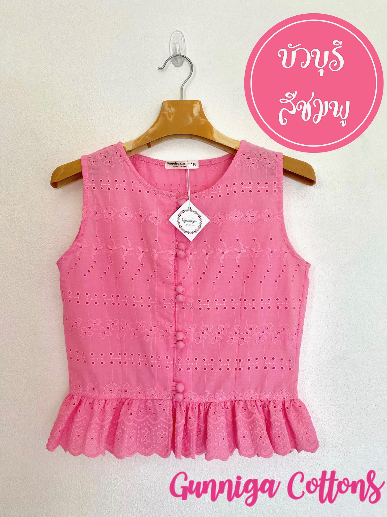 เสื้อลูกไม้ดีไซน์หวานสดใส ผลิตจาก ผ้าคอตตอน 100% ปักลูกไม้ทั้งตัว สวมใส่สบาย ระบายอากาศได้ดี เหมาะสำหรับผู้หญิงที่ชอบความเรียบง่ายแต่แฝงความอ่อนหวานสดใส