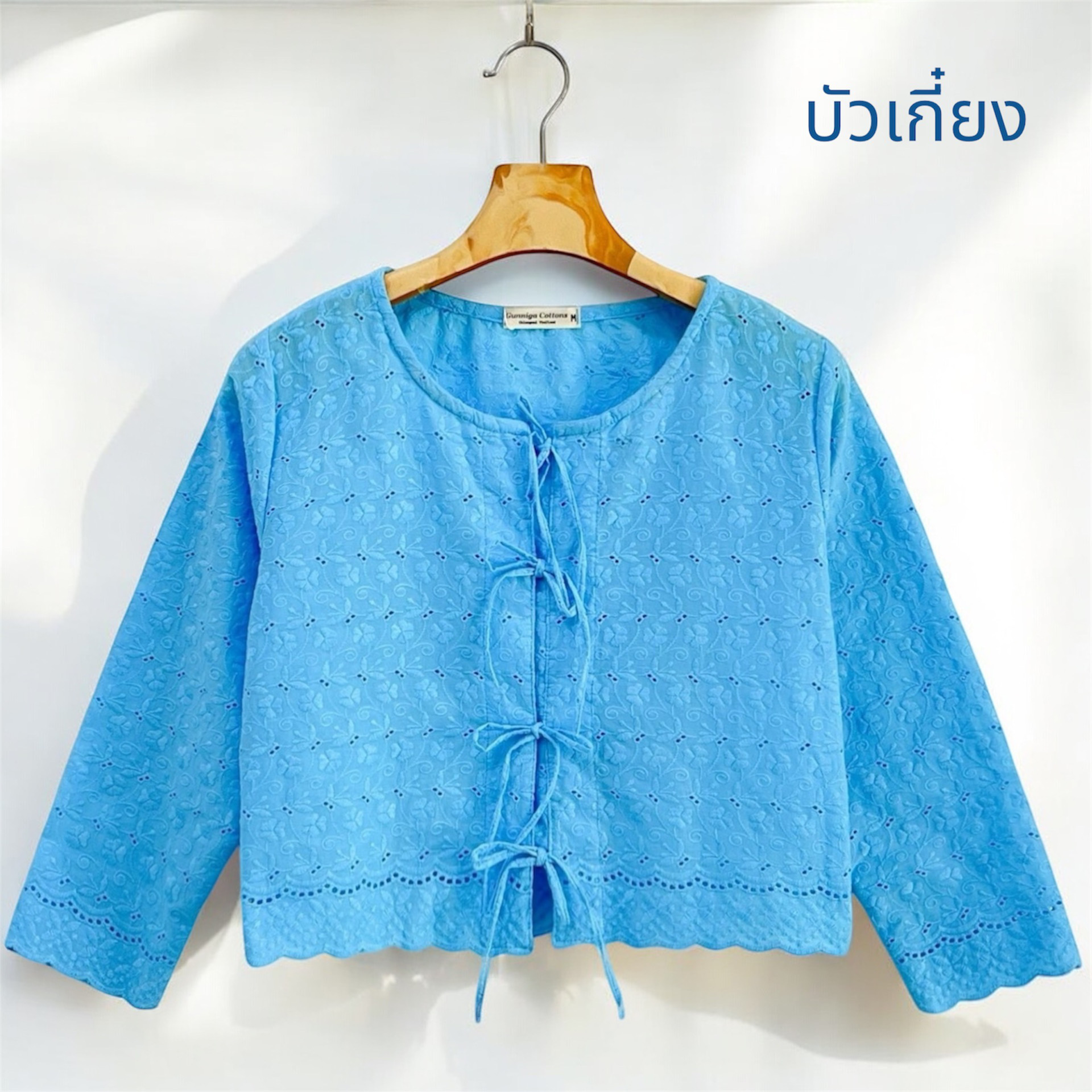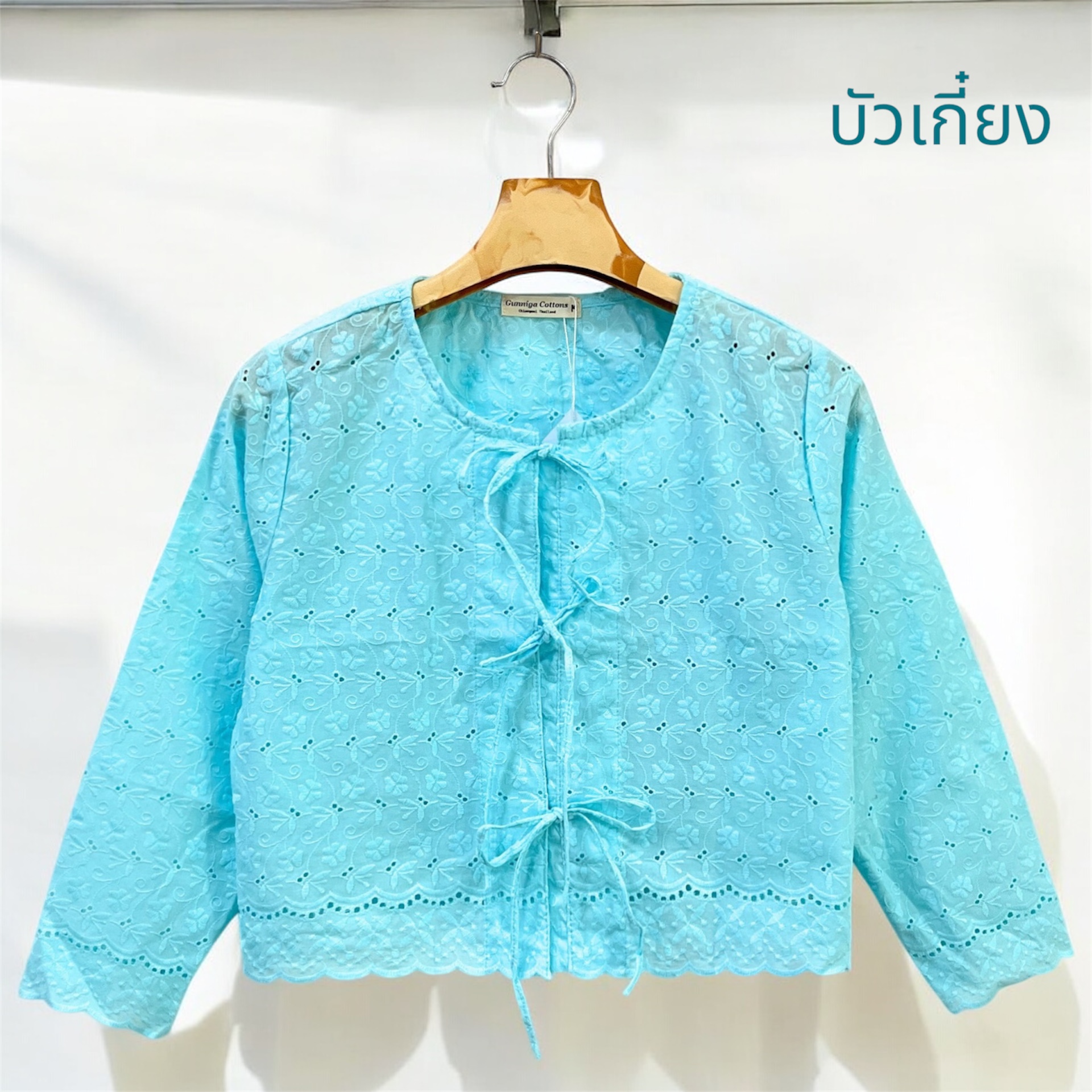✨ รายละเอียดดีไซน์ • แขนยาว เพิ่มความสุภาพและหรูหรา • ผูกโบว์ด้านหน้า ดีไซน์เก๋ น่ารักไม่ซ้ำใคร • เอวลอยเล็กน้อย ช่วยเสริมลุคให้ดูสดใส อ่อนเยาว์ และทันสมัย • ทรงสวย ใส่แล้วน่ารักมาก เข้ากับได้ทั้งผ้าถุง ผ้าซิ่น หรือกางเกง